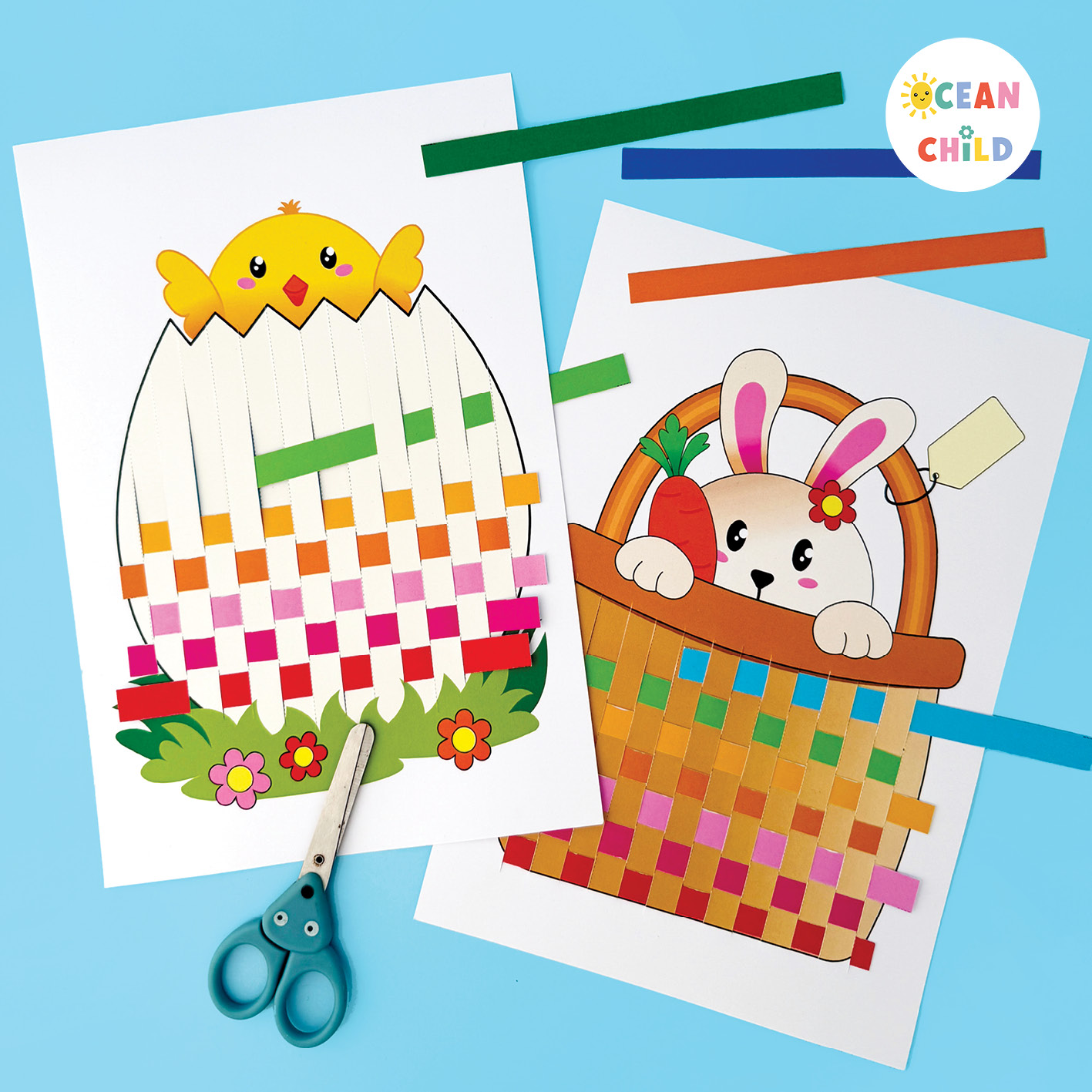 This is a fantastic fine motor Easter craft for kids. Paper weaving helps children practice concentration and hand-eye coordination while creating colorful Easter designs.