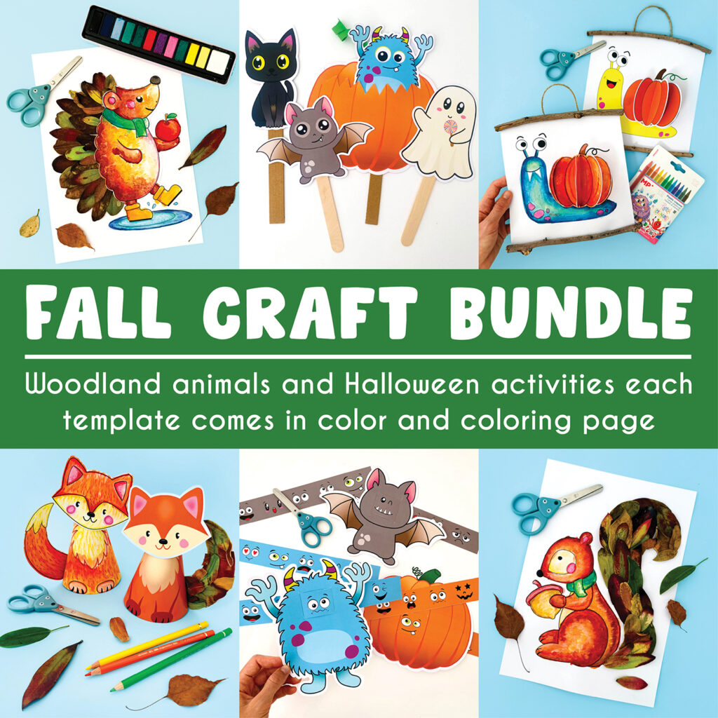 Celebrate autumn with our Fall & Halloween Craft Printable Bundle, a fun mix of woodland animals, pumpkins, and friendly Halloween characters kids will love.