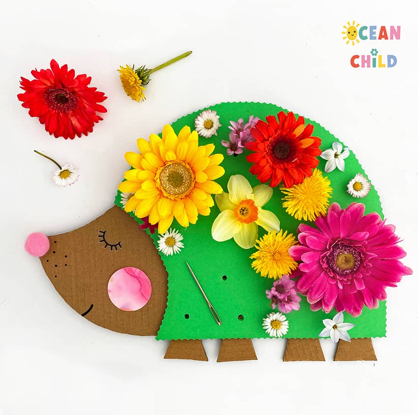 This cute hedgehog craft is much fun to create. We love hedgehogs; they´re super cute and the perfect animal to turn into fun crafts. This flower-power hedgehog is a perfect craft for the spring season and will put a smile on many faces. The crafting process is also fun, as you can take your cardboard hedgehog outside and decorate it with colorful flowers. So gather the craft supplies below, and let´s make this cute hedgehog craft idea!