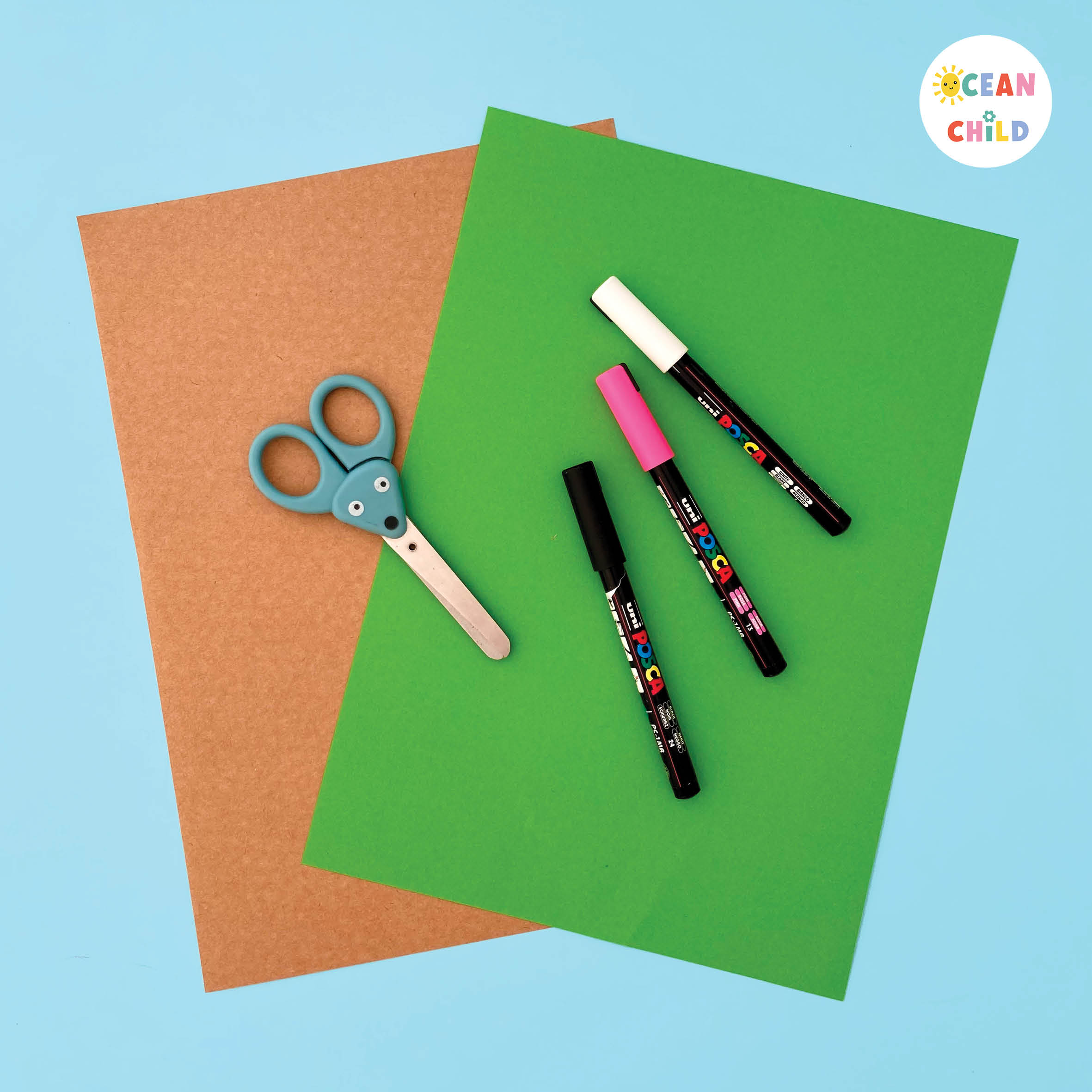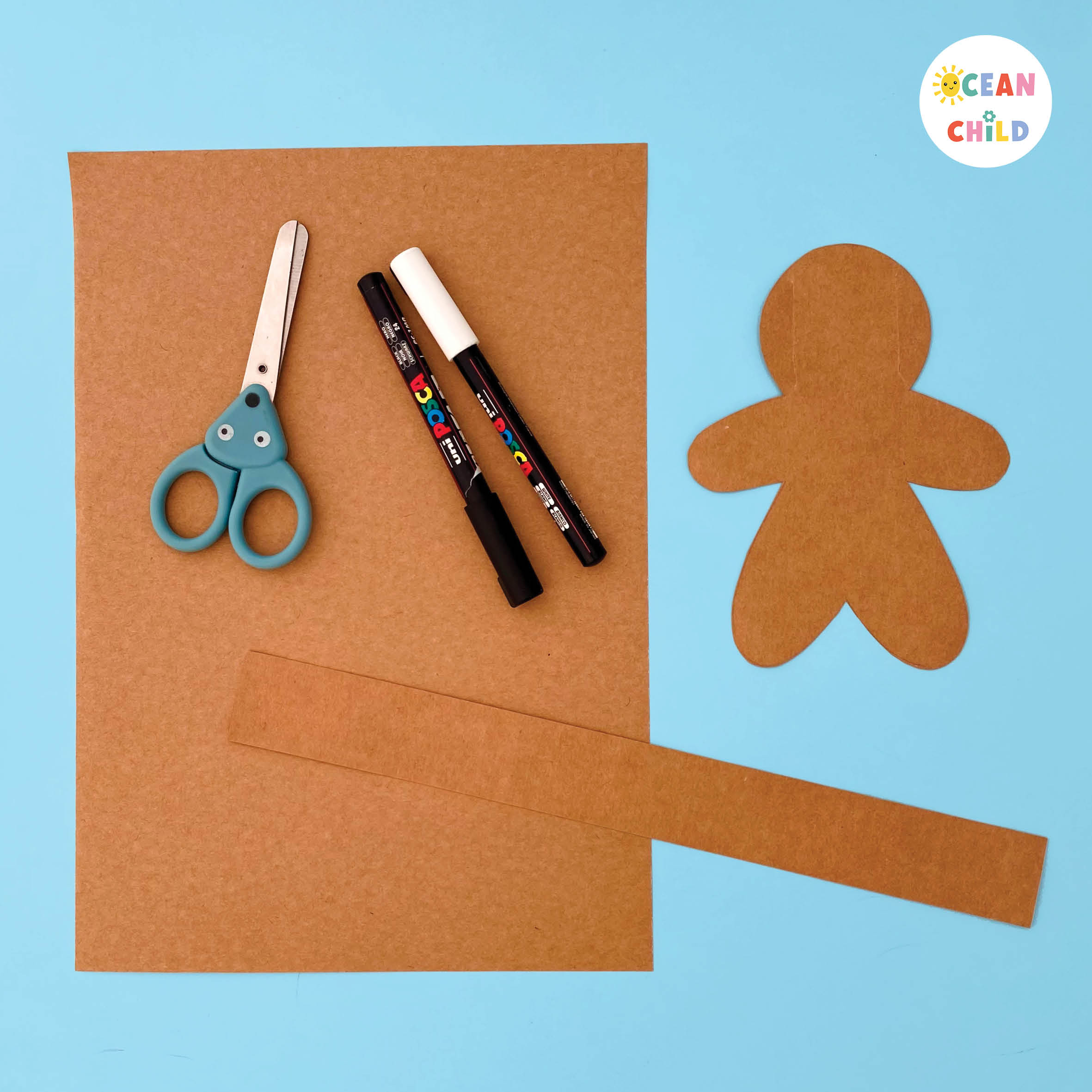 If you want to make the Christmas tree use green colored craft paper. For the ginger bread man we will be using brown craft paper, sketch and cut out your gingerbread man. Ours is about 17 cm tall, large enough for easy decorating and fun play. I recomend using craft paper as its more sturdy and easier for little hands.