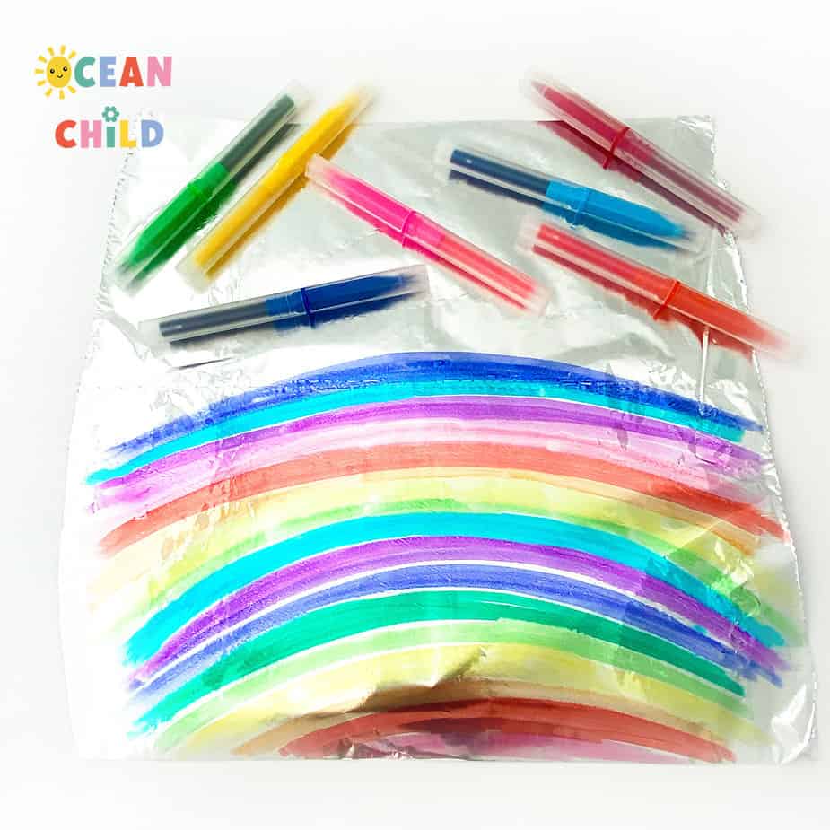 Step 3: Take a piece of tin foil about twice the size of your mermaid tail. And start coloring the foil with colored markers. Ensure you cover the entire page; see the picture. Use bright colors for the best result.