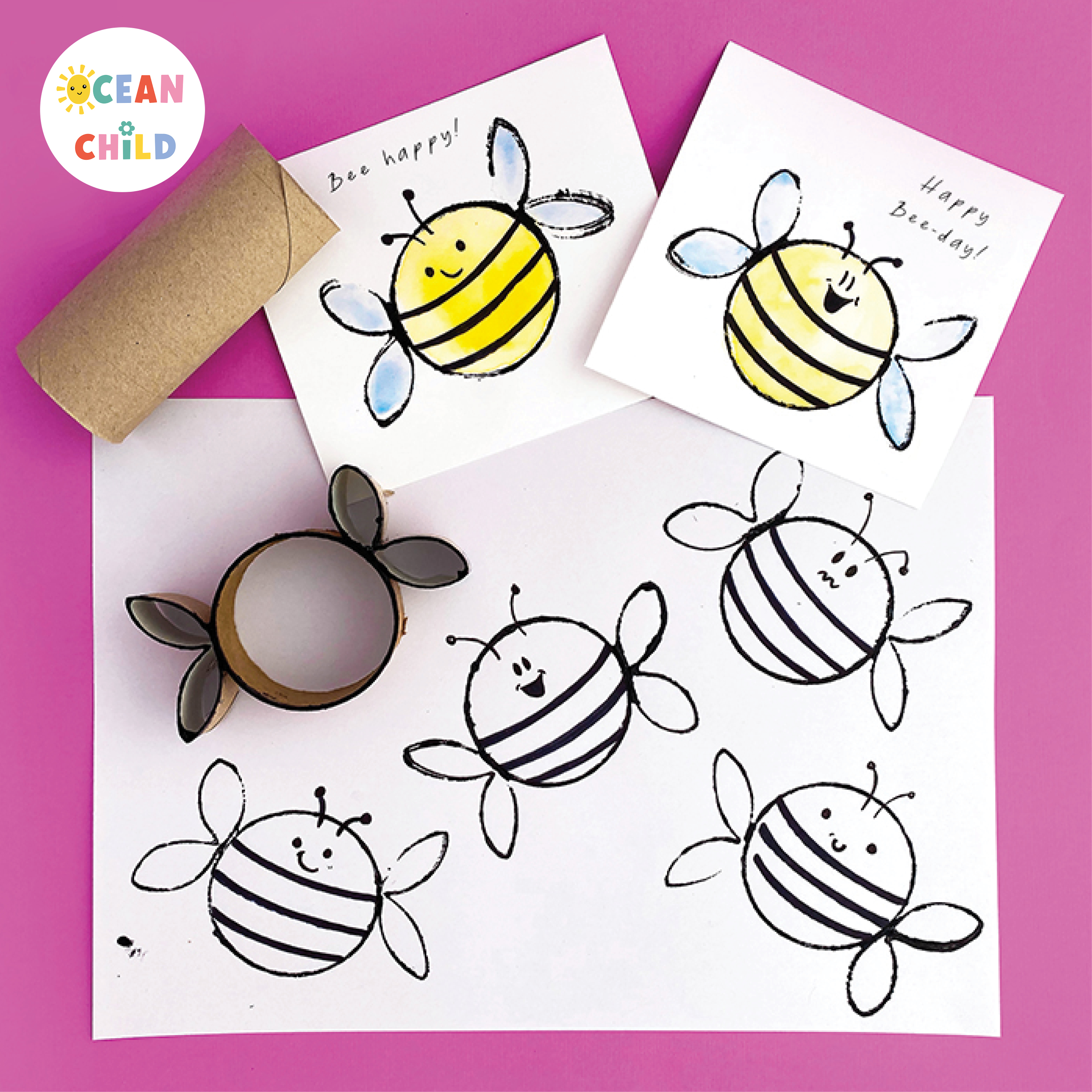 7. Adorable Paper Roll Bee Stamps