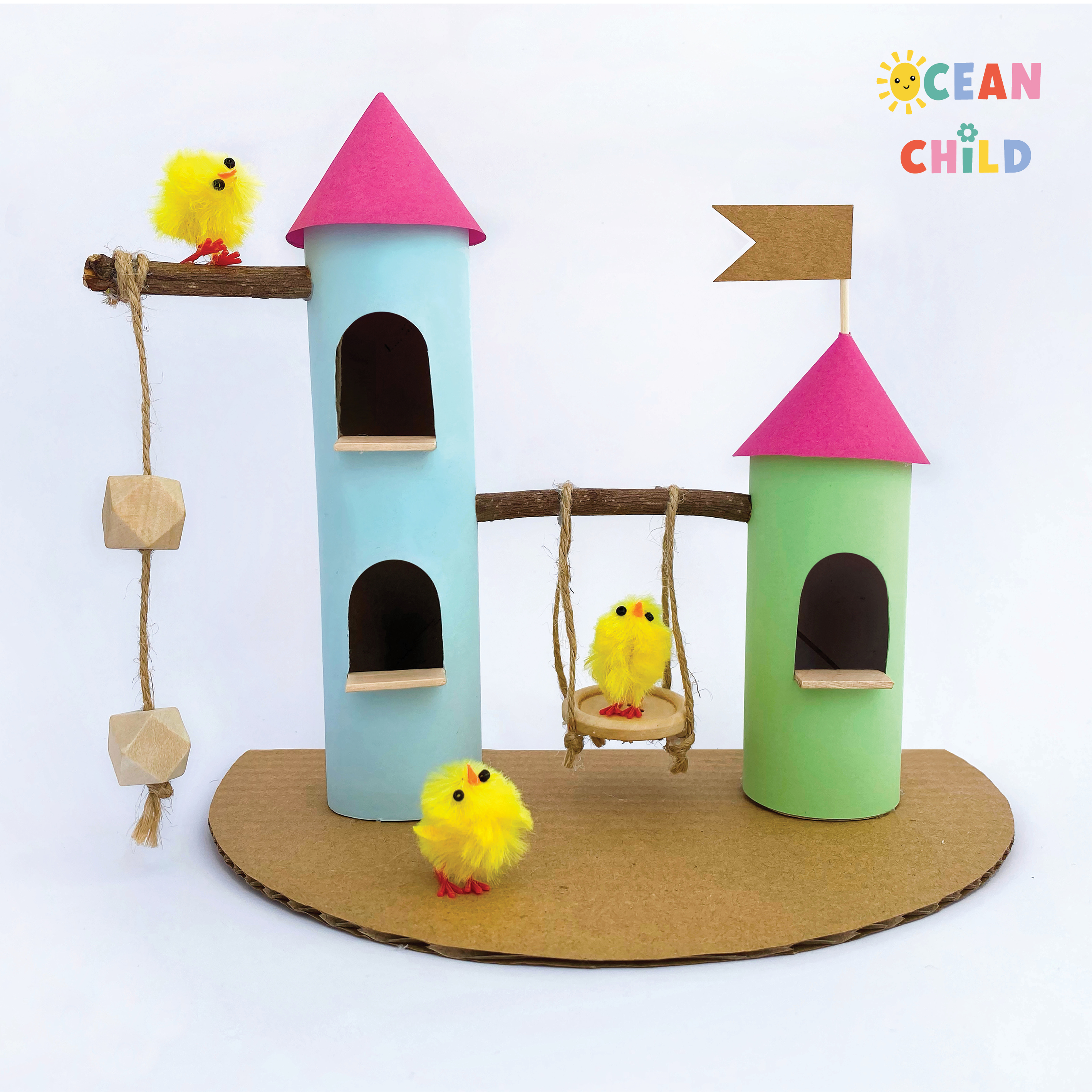Build a chick castle from paper tubes, with an adorable swing made from a button. See image above. This craft is ideal for spring, Easter, or fairy tale-themed activities. A great combination of craft time with some imaginative play afterwards.