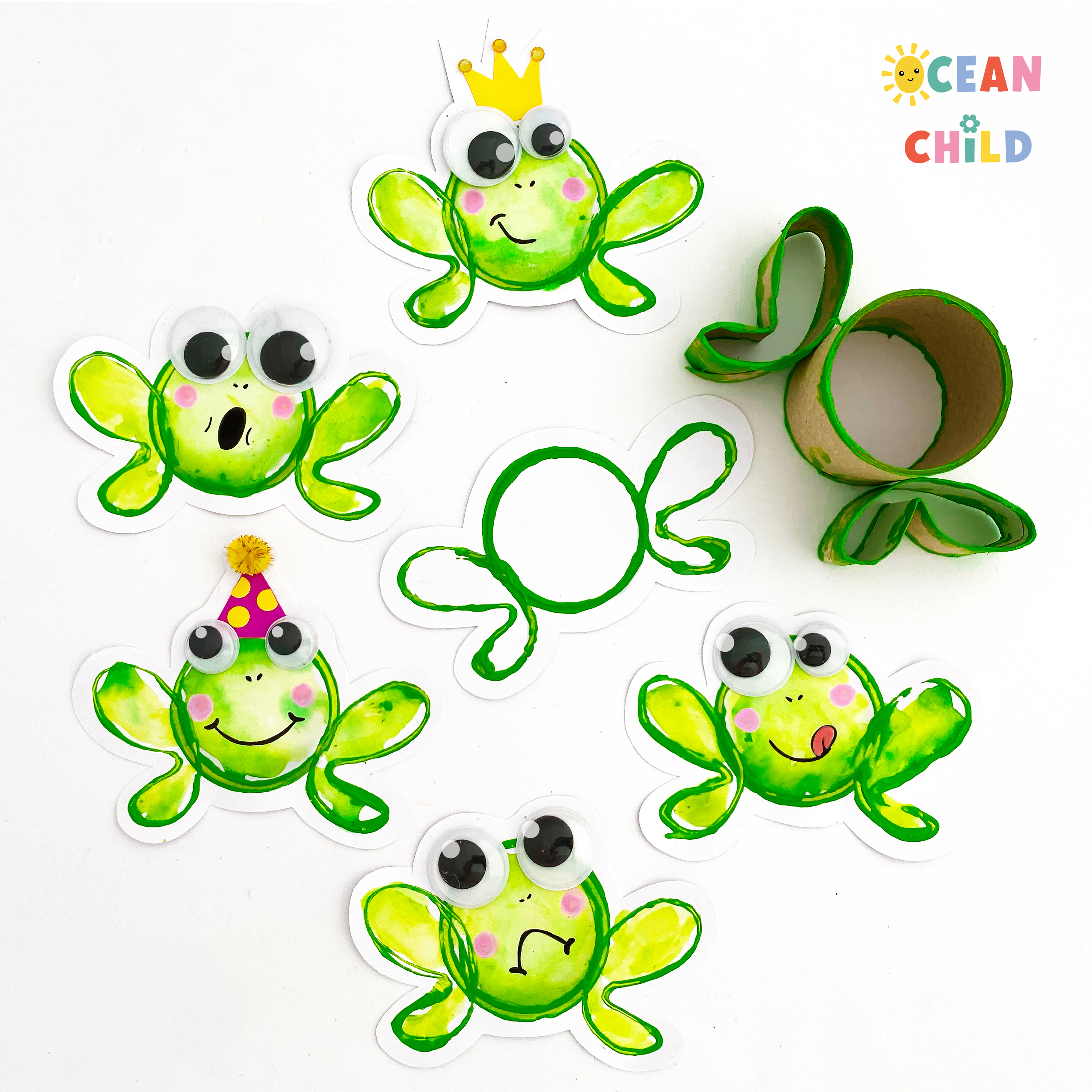 Use a toilet paper roll to stamp silly frogs with green paint and add some googly eyes for a funky touch. See image above. This frog stamp craft is a great sensory and painting activity for toddlers.