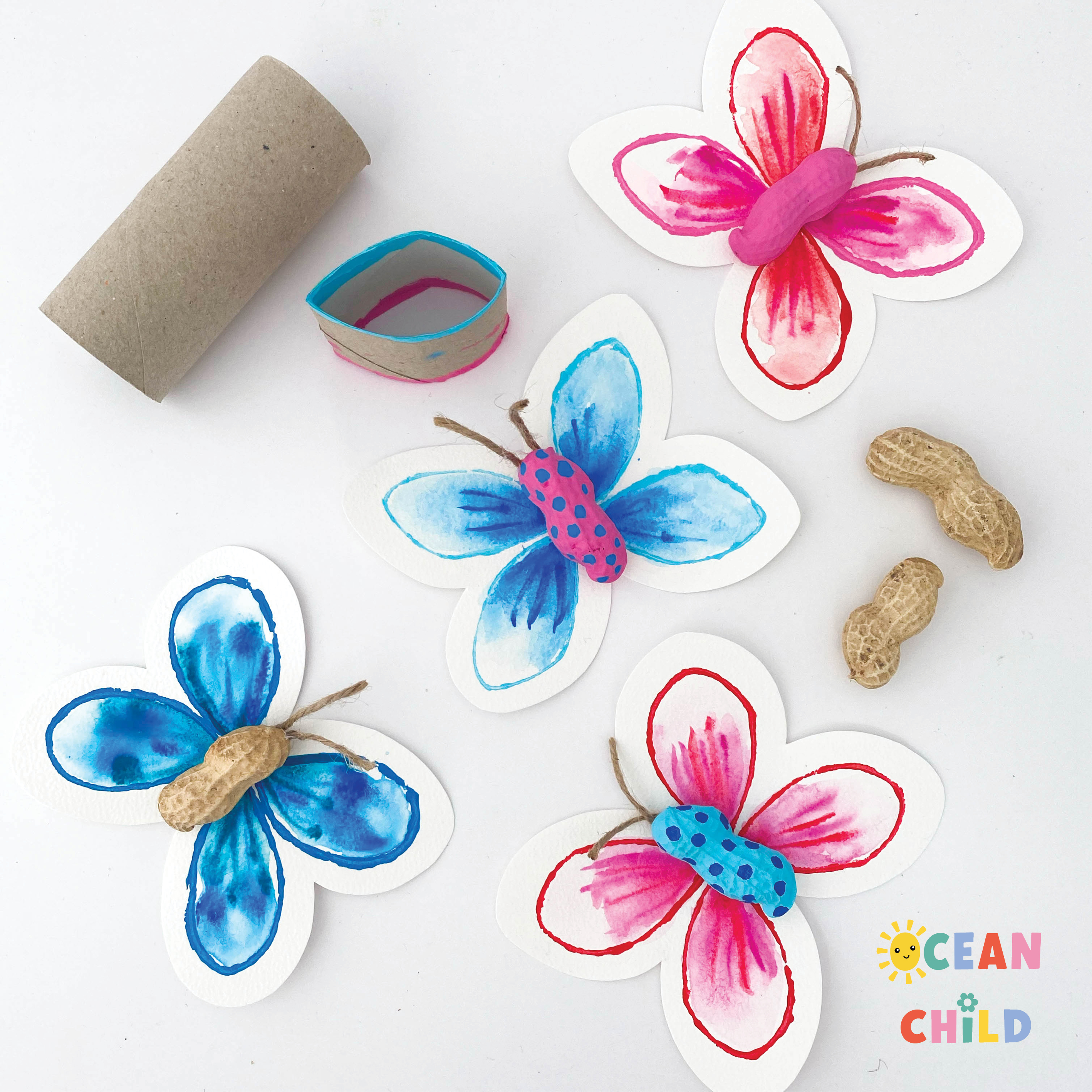 Stamp butterflies with paper rolls and use peanuts for the bodies in a fun twist. See image above. This unique butterfly stamping craft is excellent for fine motor skills. A fun art activity to welcome the sprint season. Find the step-by-step craft instructions right here.