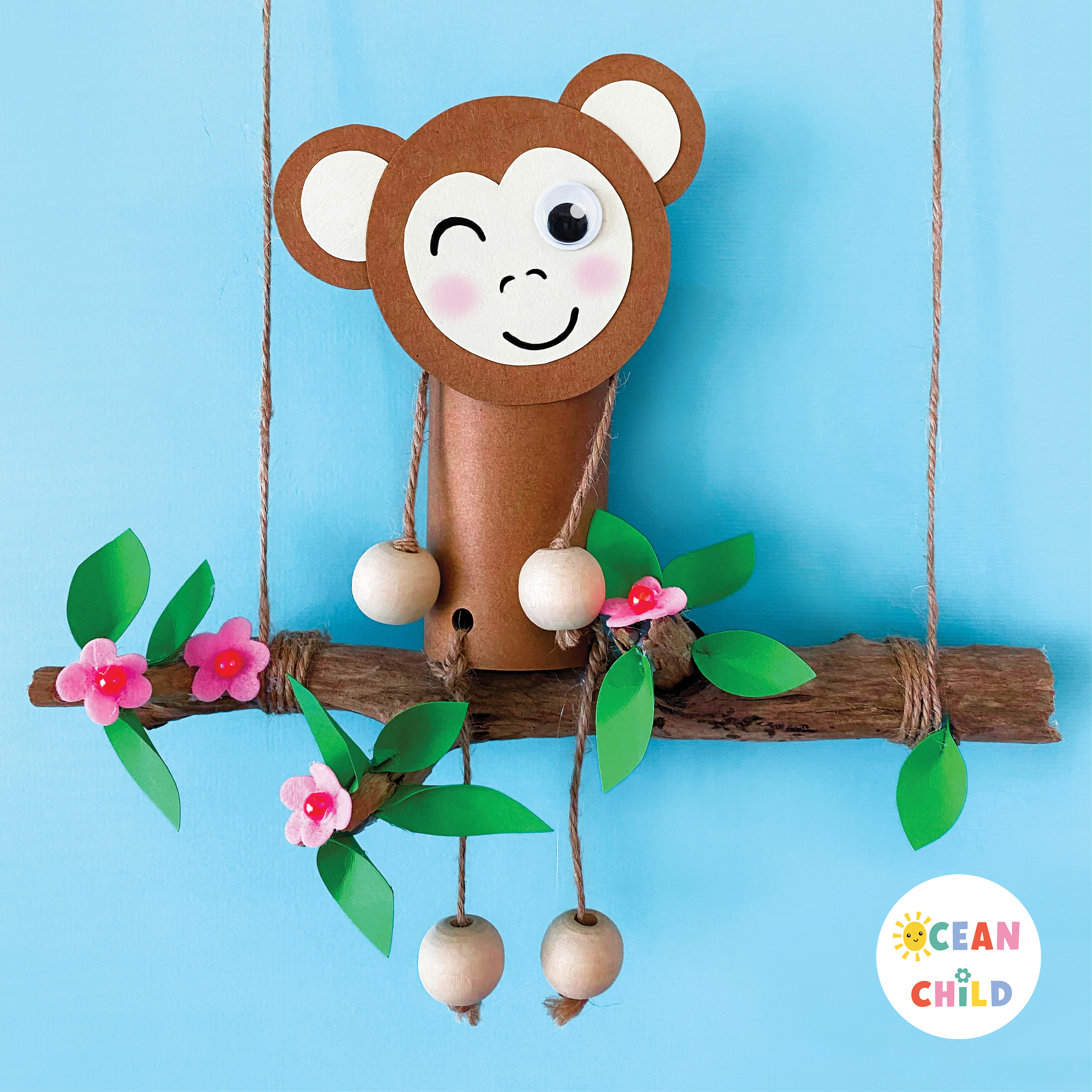 Craft a silly monkey with dangling legs from a toilet paper roll for some jungle-themed fun. See image below. Glue it on a stick and you have the perfect classroom décor. Find the step-by-step craft instructions right here.