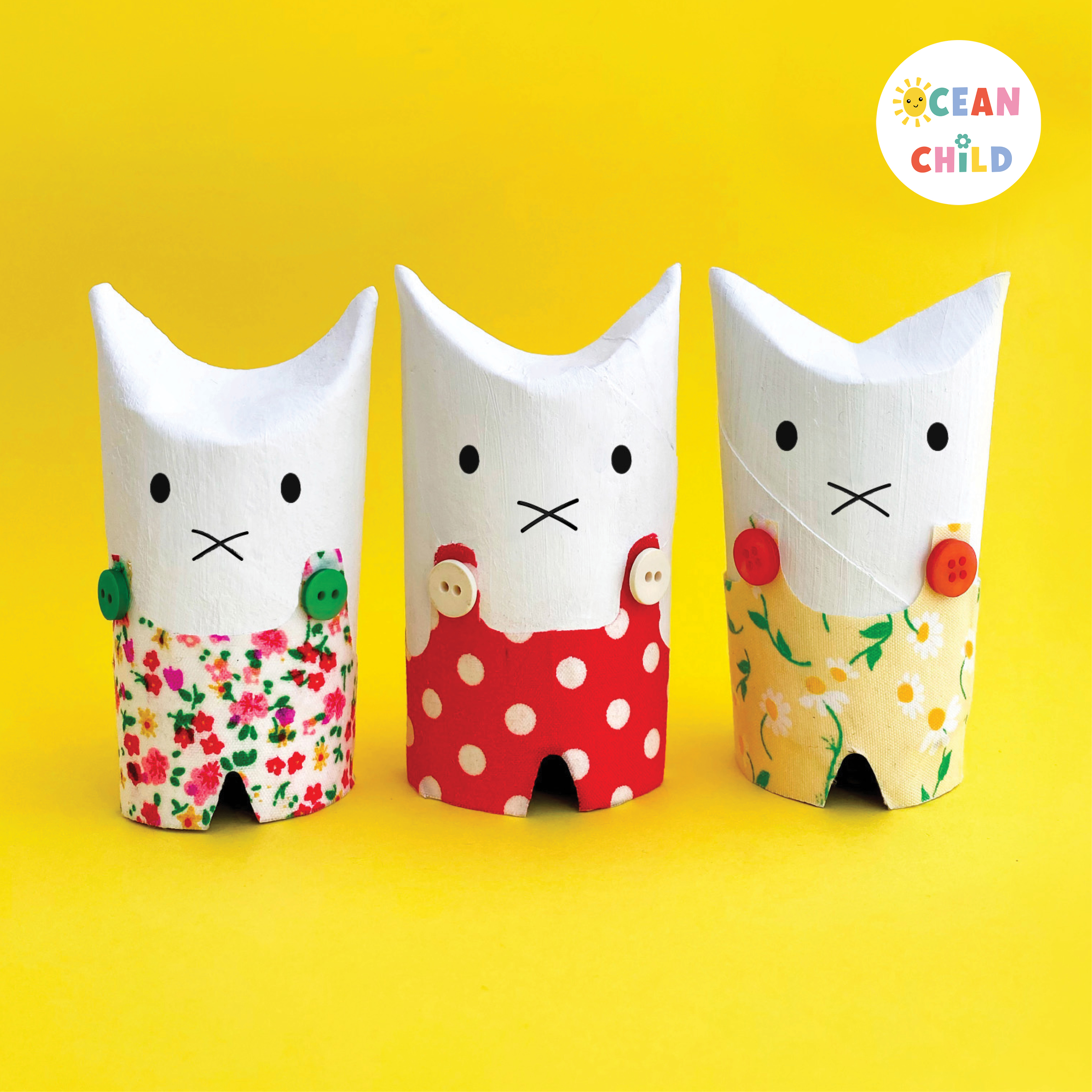 Turn toilet paper rolls into adorable spring bunnies. We gave our spring bunnies colorful dungarees. This simple bunny craft is perfect for Easter holiday decorations and a way to celebrate spring season. See image below.
