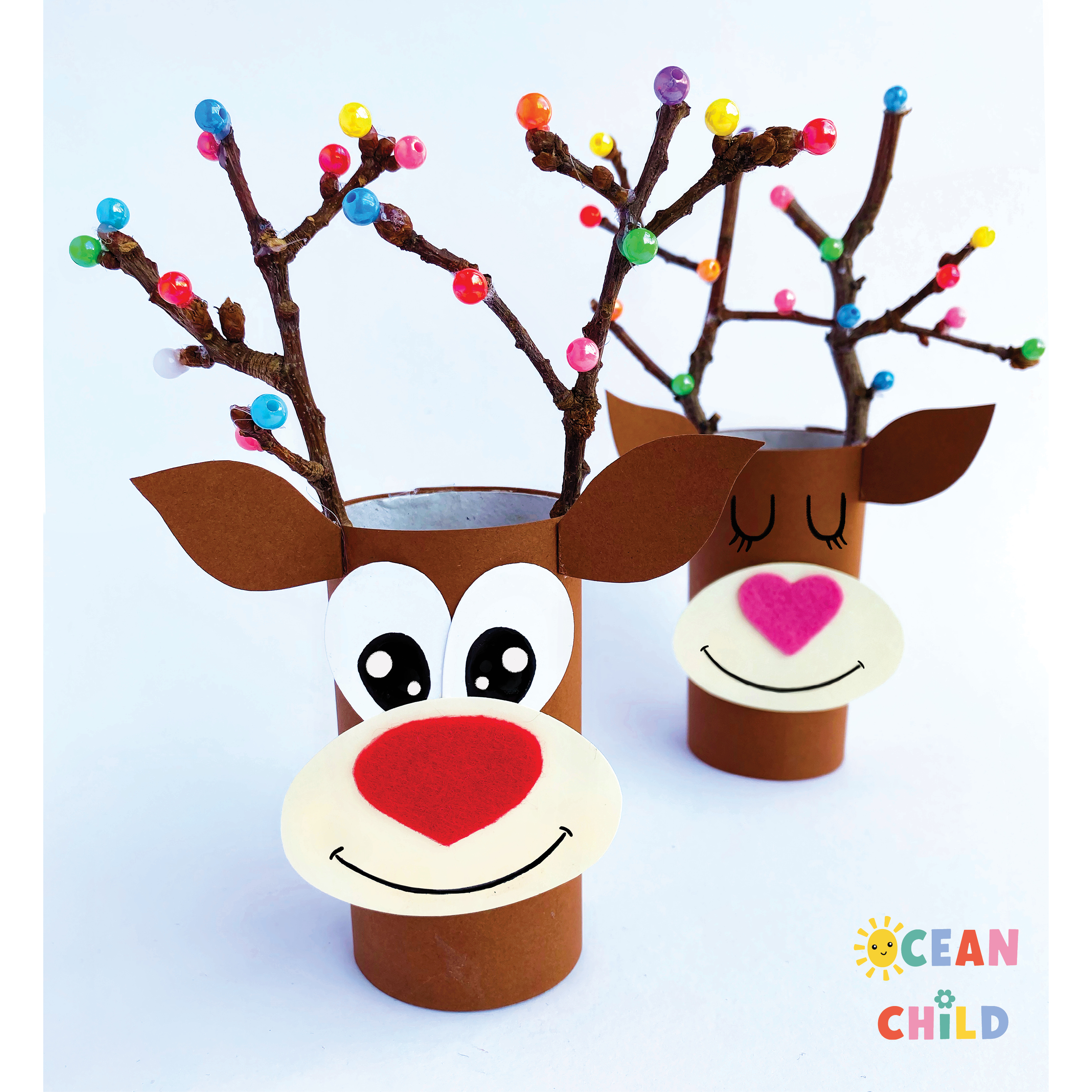 This easy craft is a lot of fun to make with kids of all ages. Use your paper roll as a base, glue two sticks on top, and decorate the sticks with beads. The perfect festive craft for the Holiday season! See image above.