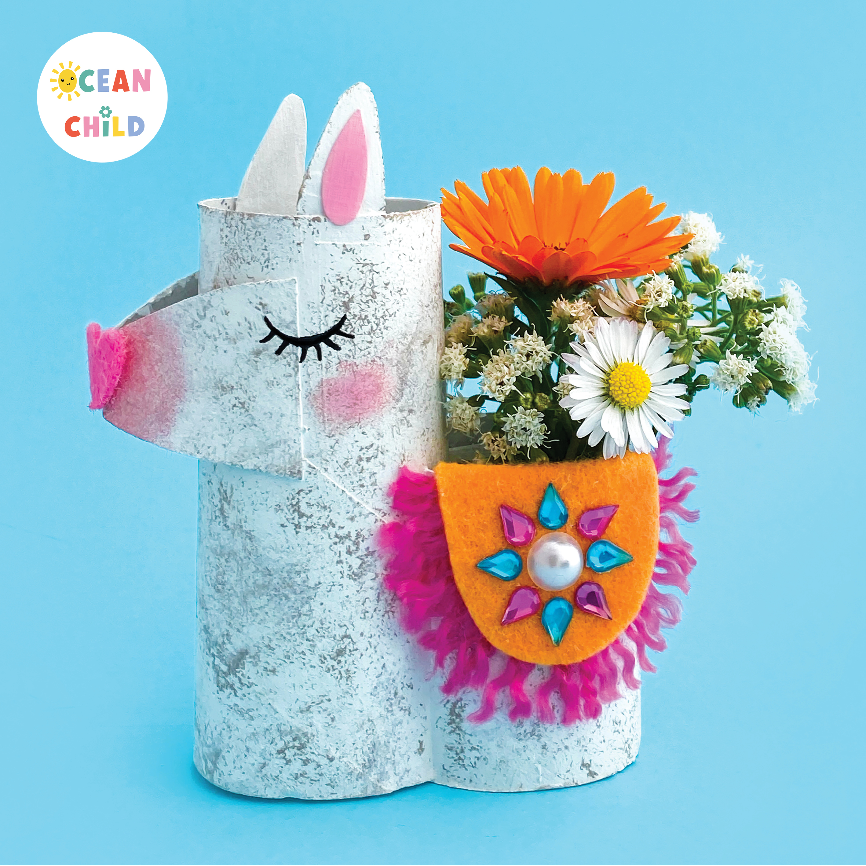 Create a llama flower vase from a paper tube, decorated with a cute face and colorful blooms. See image above. This cheerful craft is perfect for spring but also makes a sweet gift idea for a loved one.