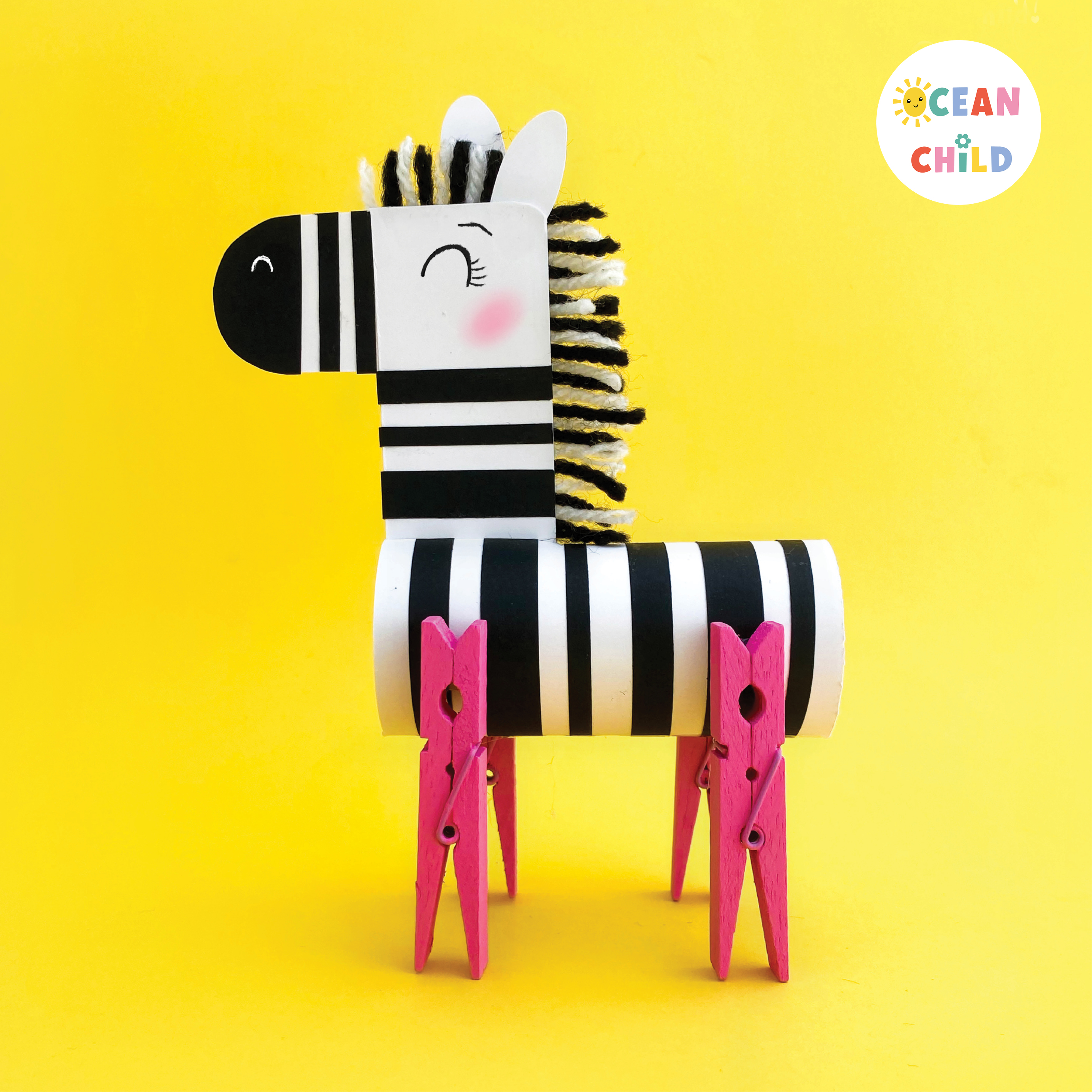 2. Paper Roll Zebra with Clothespin Legs