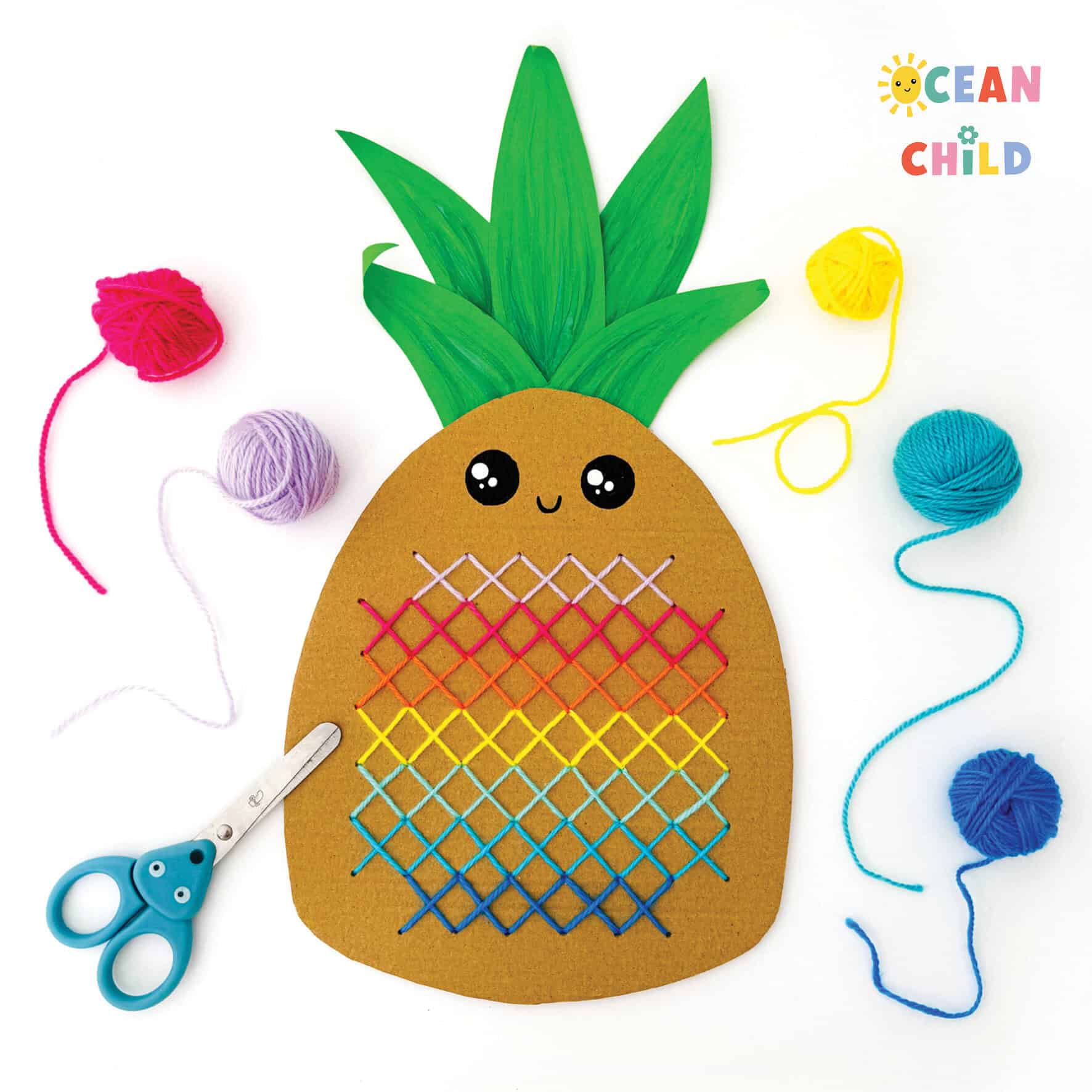 To make this craft super simple, we’ve created a free printable template! It includes the pineapple shape and all the stitch hole placements, so you don’t have to worry about measuring or guessing. Just print it out, trace it onto cardboard, and you’re ready to go!