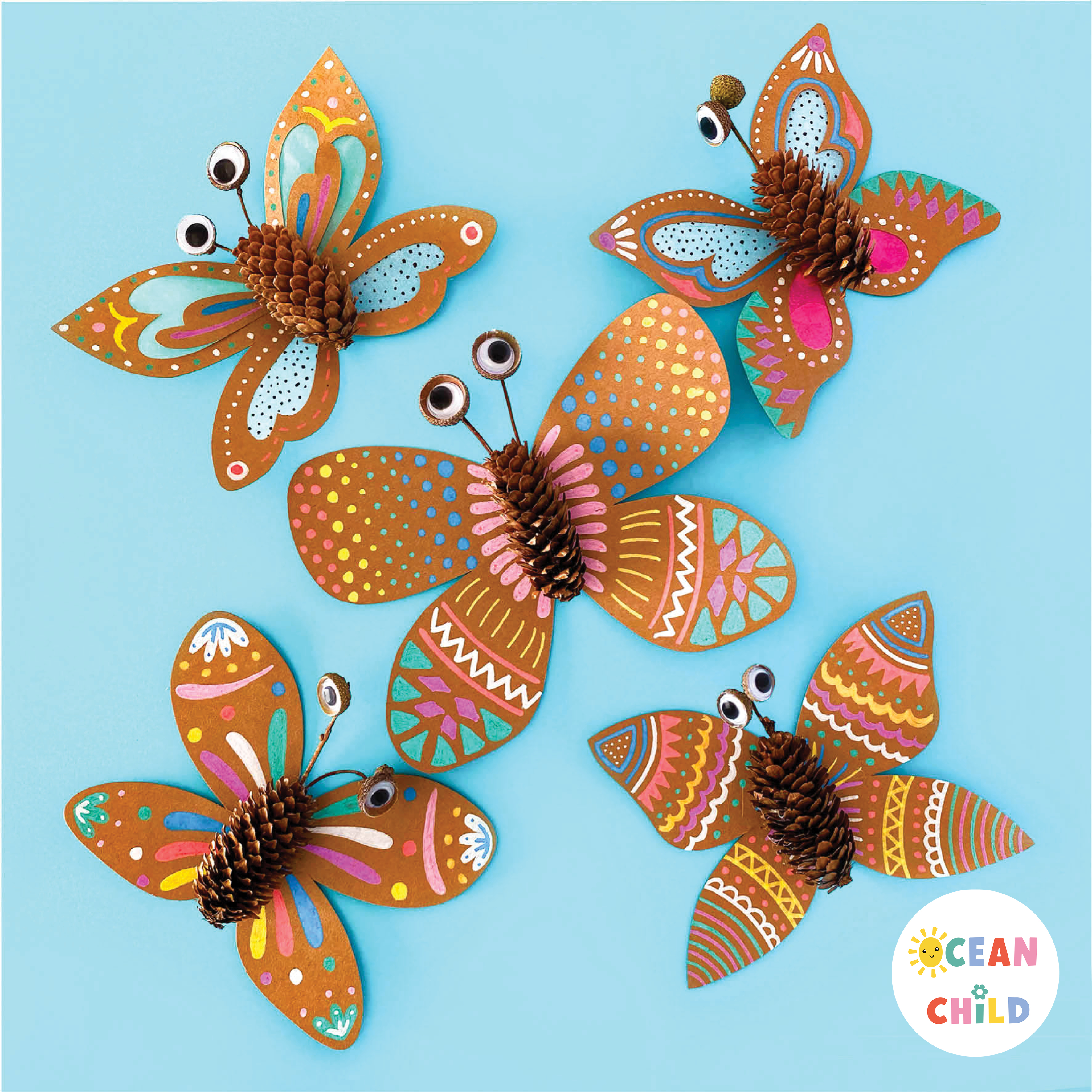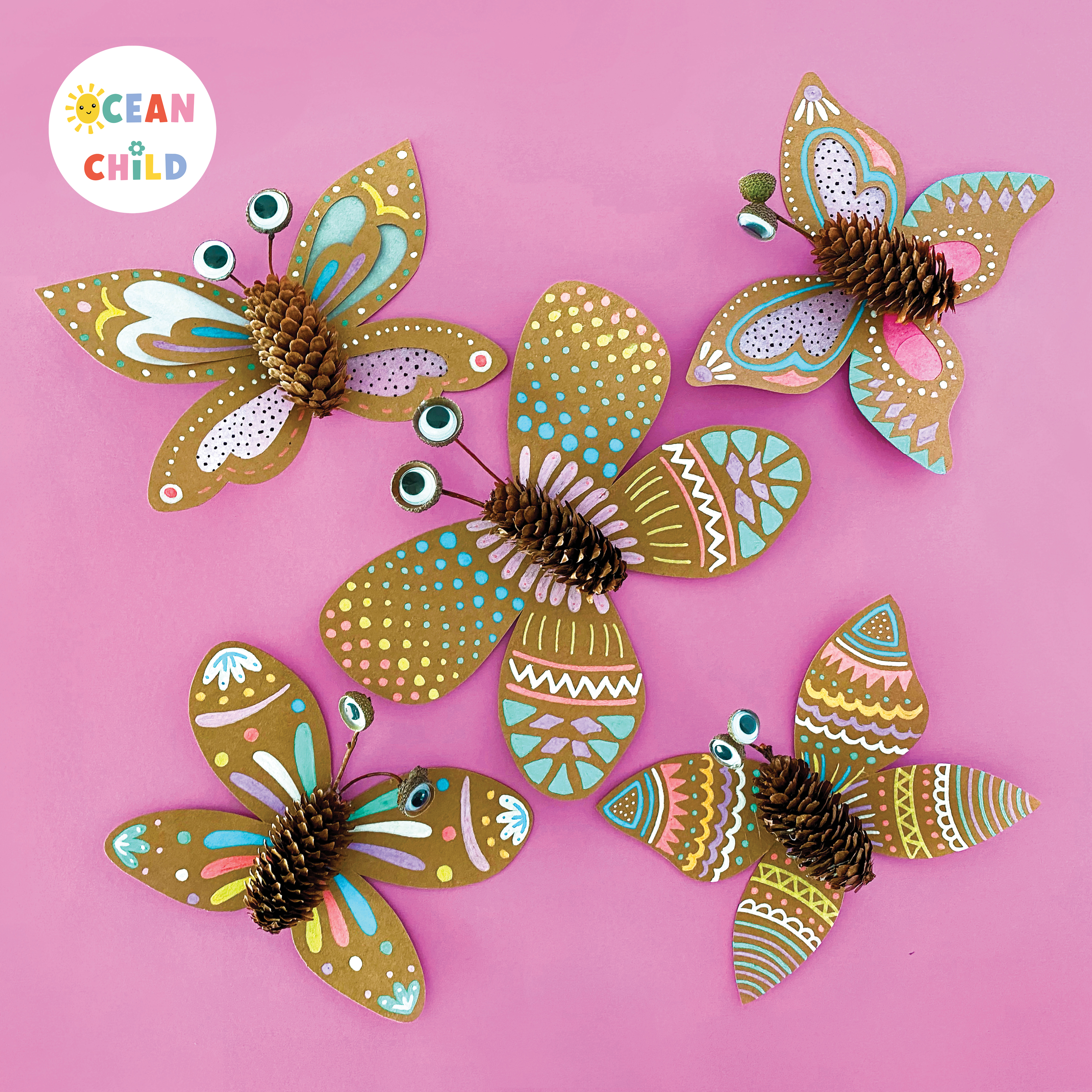 Step-by-step pinecone butterflies craft activity