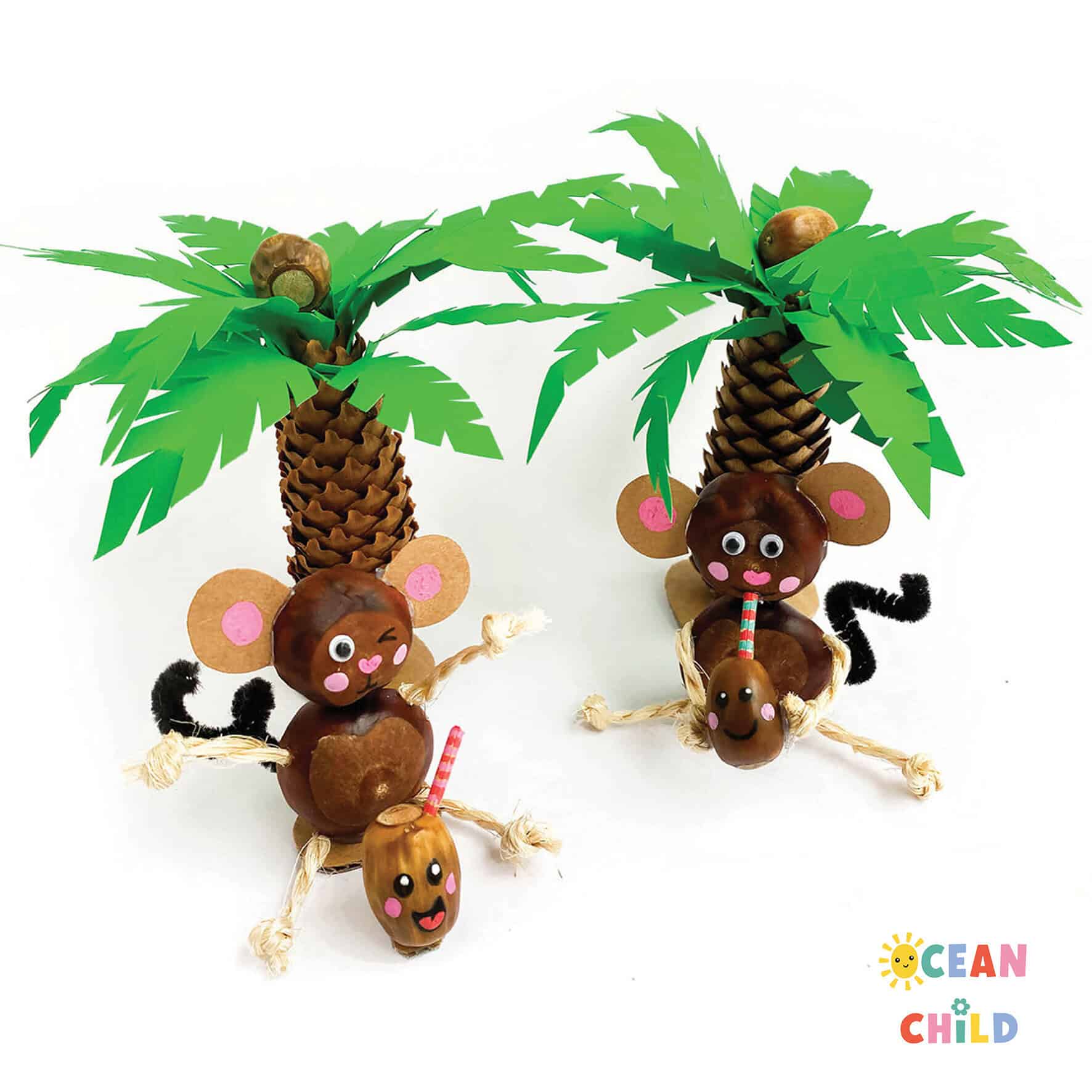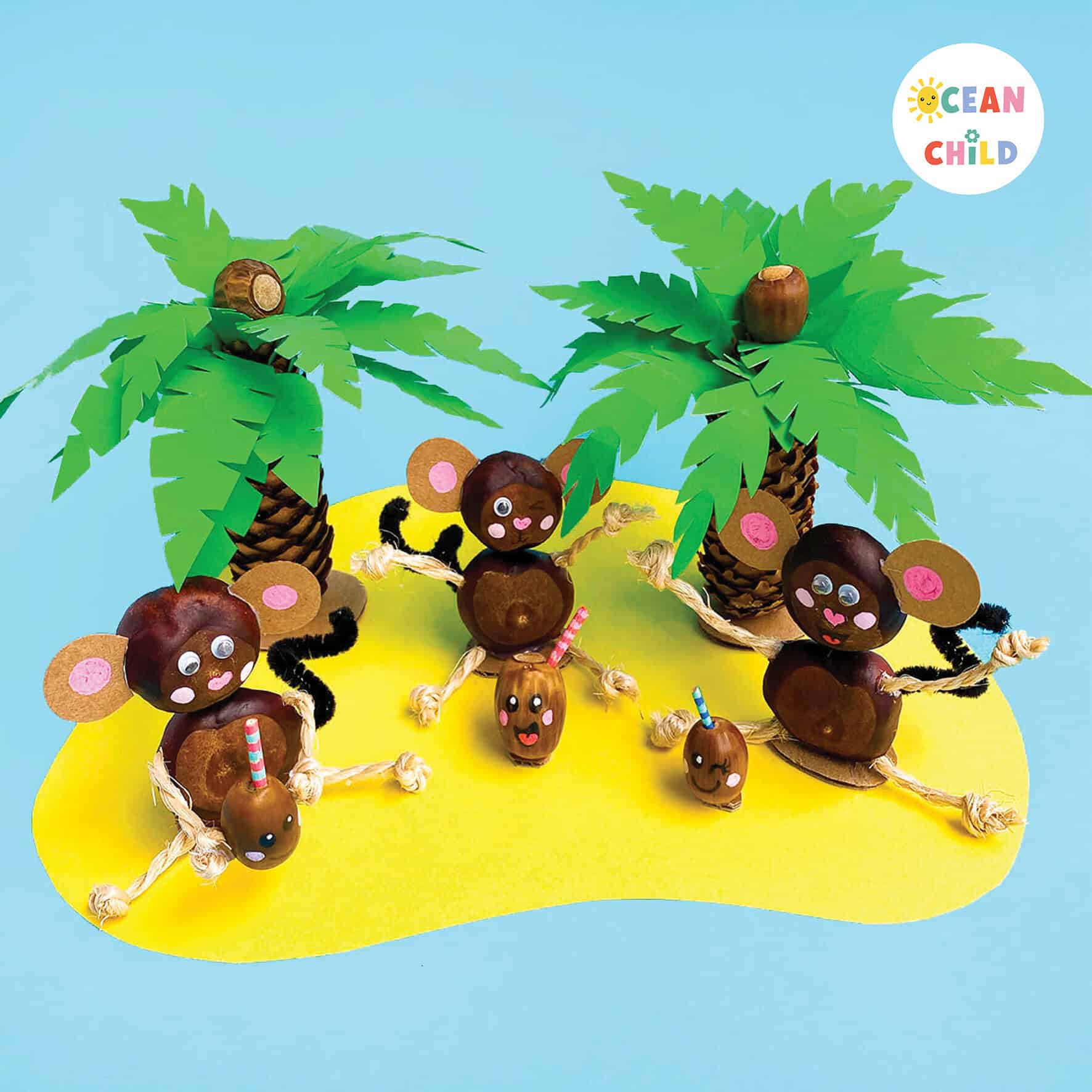 Turn a pinecone upside down and voilà, it’s a palm tree trunk! Add paper leaves and acorns as coconuts to create a mini tropical escape, autumn style. A fun mix of summer and fall that kids will love building.