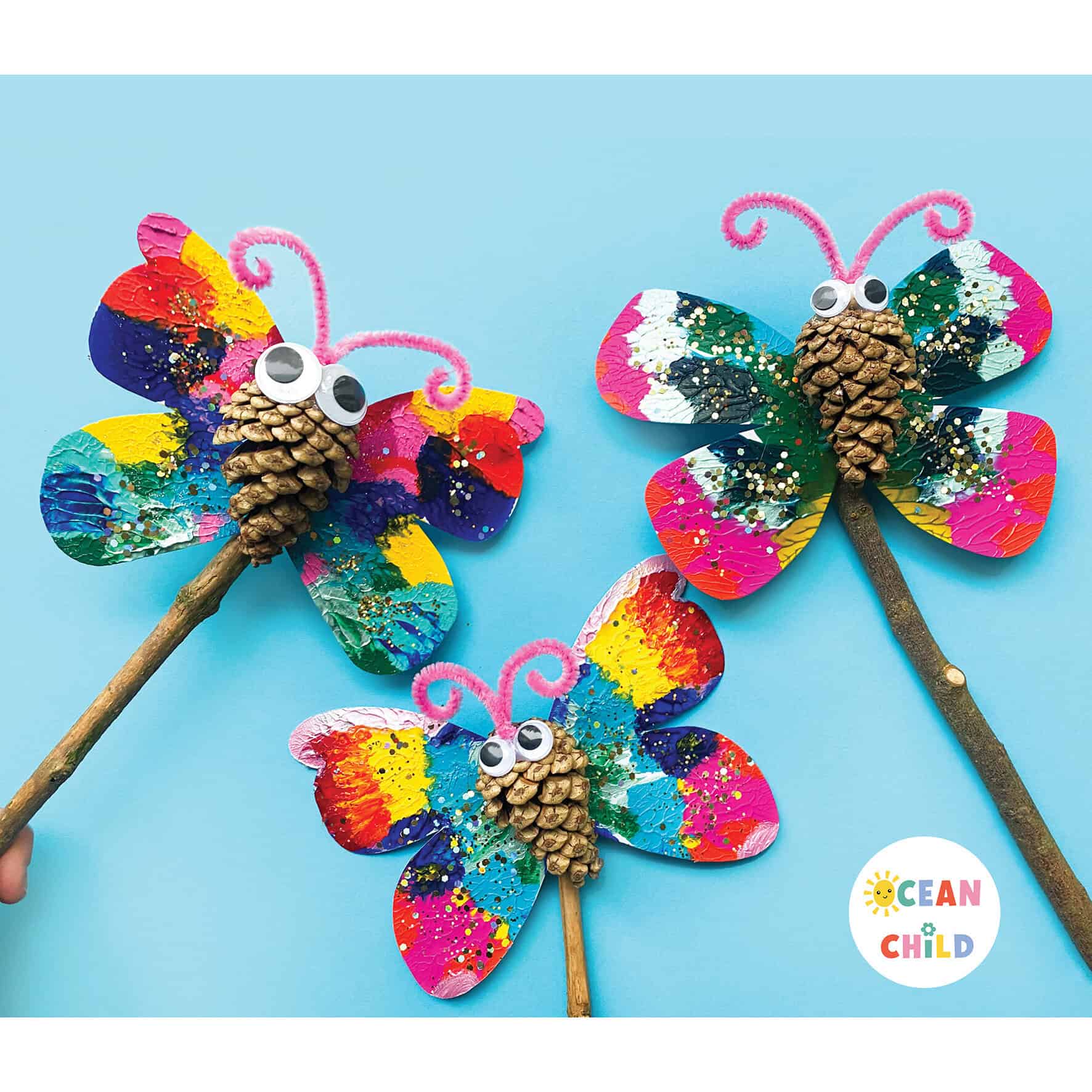 You can find the step-by-step craft instructions on these pinecone butterfly puppets right here.