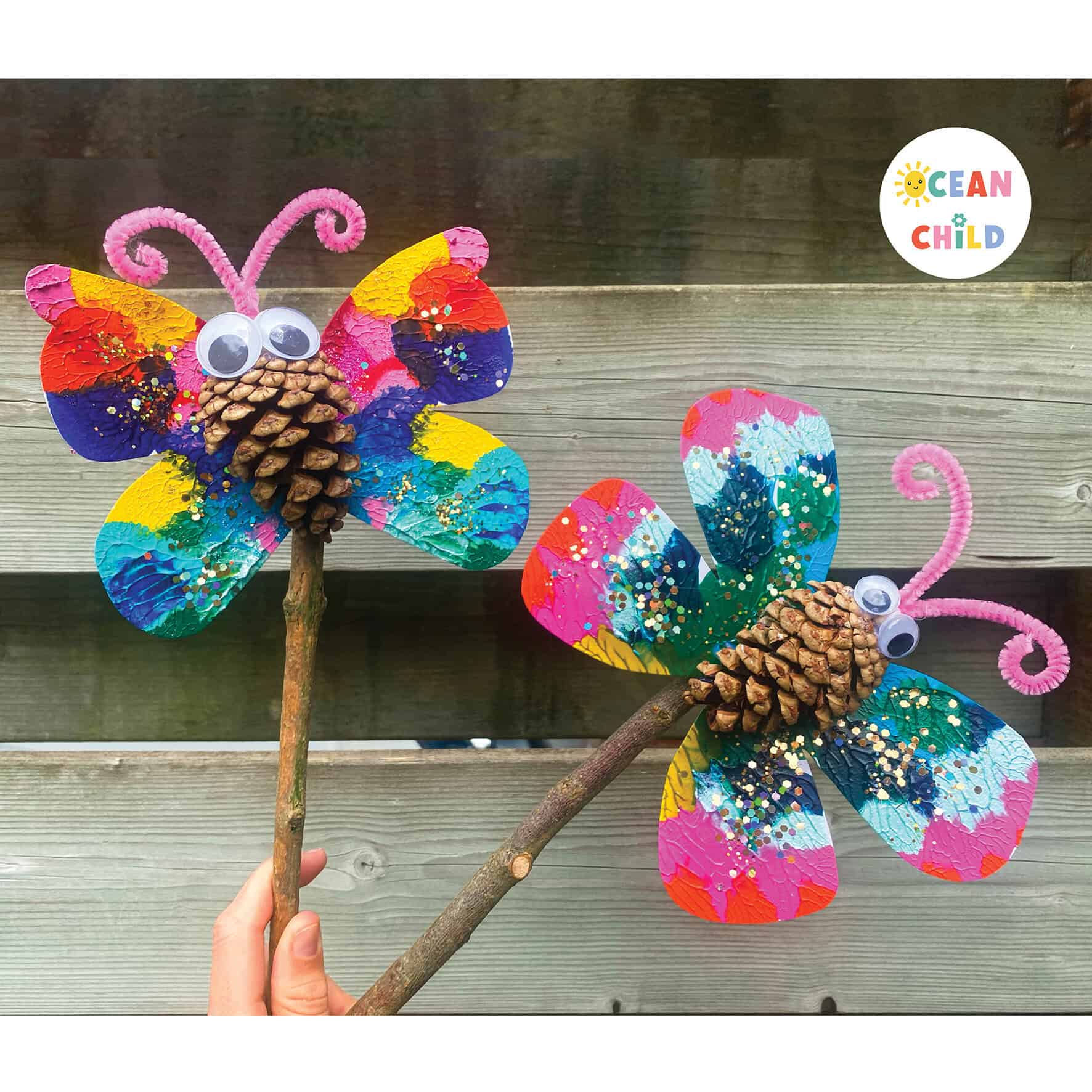 Pinecones and sticks become whimsical puppets with decorated wings. Add glitter and googly eyes for extra fun, then put on a puppet show! Perfect for group activities or a classroom storytelling craft.