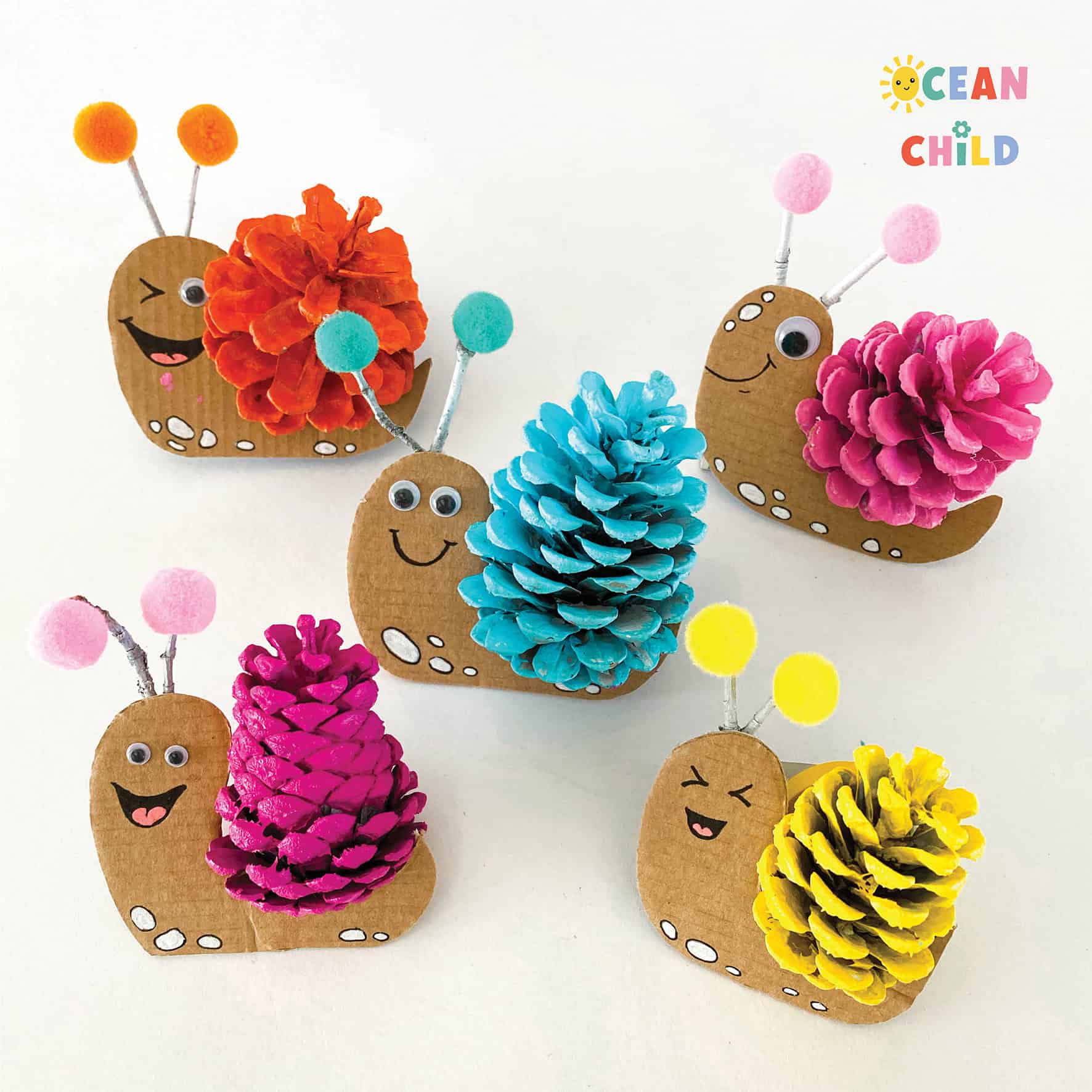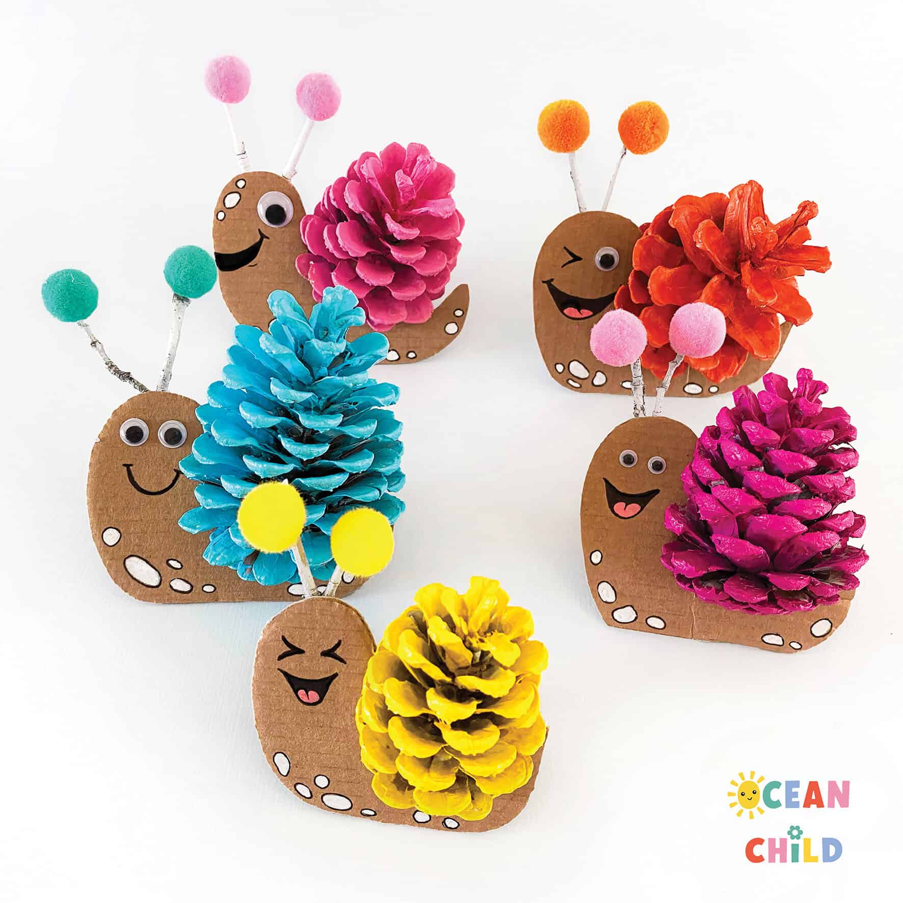 6. Colorful Pinecone Snail Craft for Fall
