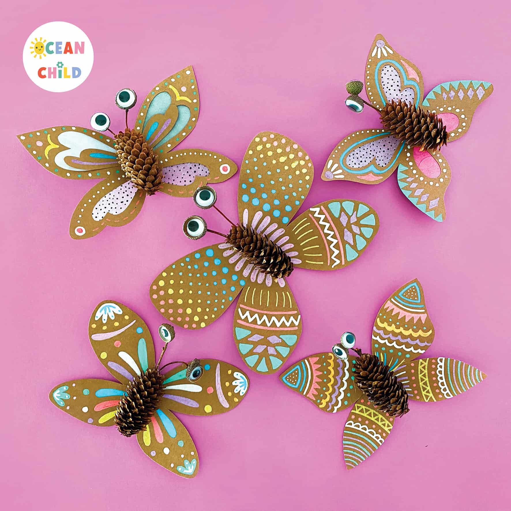 You can find the step-by-step craft instructions on these beautiful decorated pinecone butterflies right here.