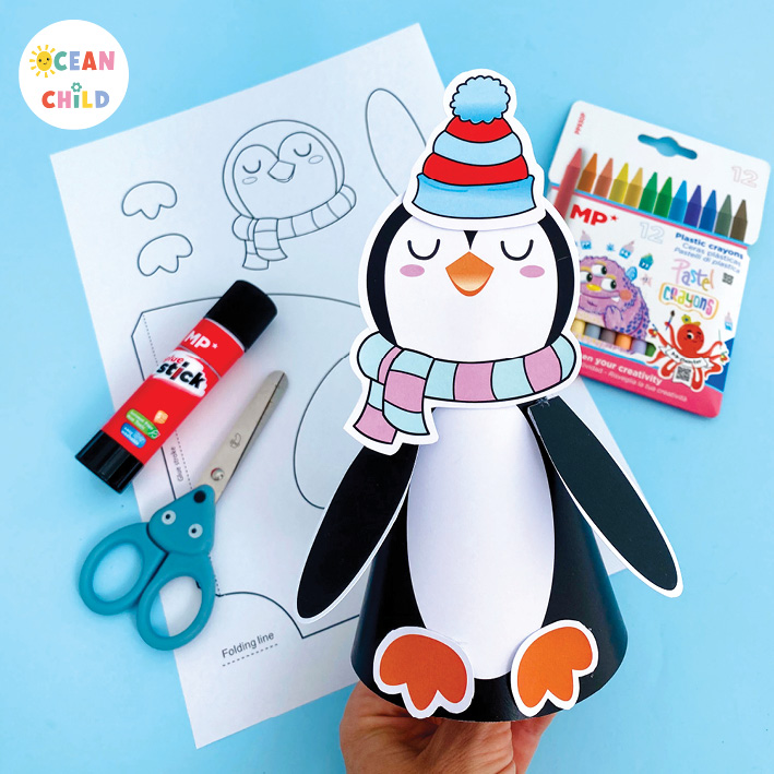 These charming paper cone puppets let kids bring their favorite Christmas characters to life. The set includes five festive designs: Santa, snowman, polar bear, penguin, and deer, each available in full color and as a coloring page. Children can color, cut, and assemble their puppets, then add small accessories to make each character uniquely their own. The finished 3D puppets are great for storytelling, imaginative play, or classroom displays. This craft builds fine motor skills and creativity while giving kids a playful, hands-on holiday experience.