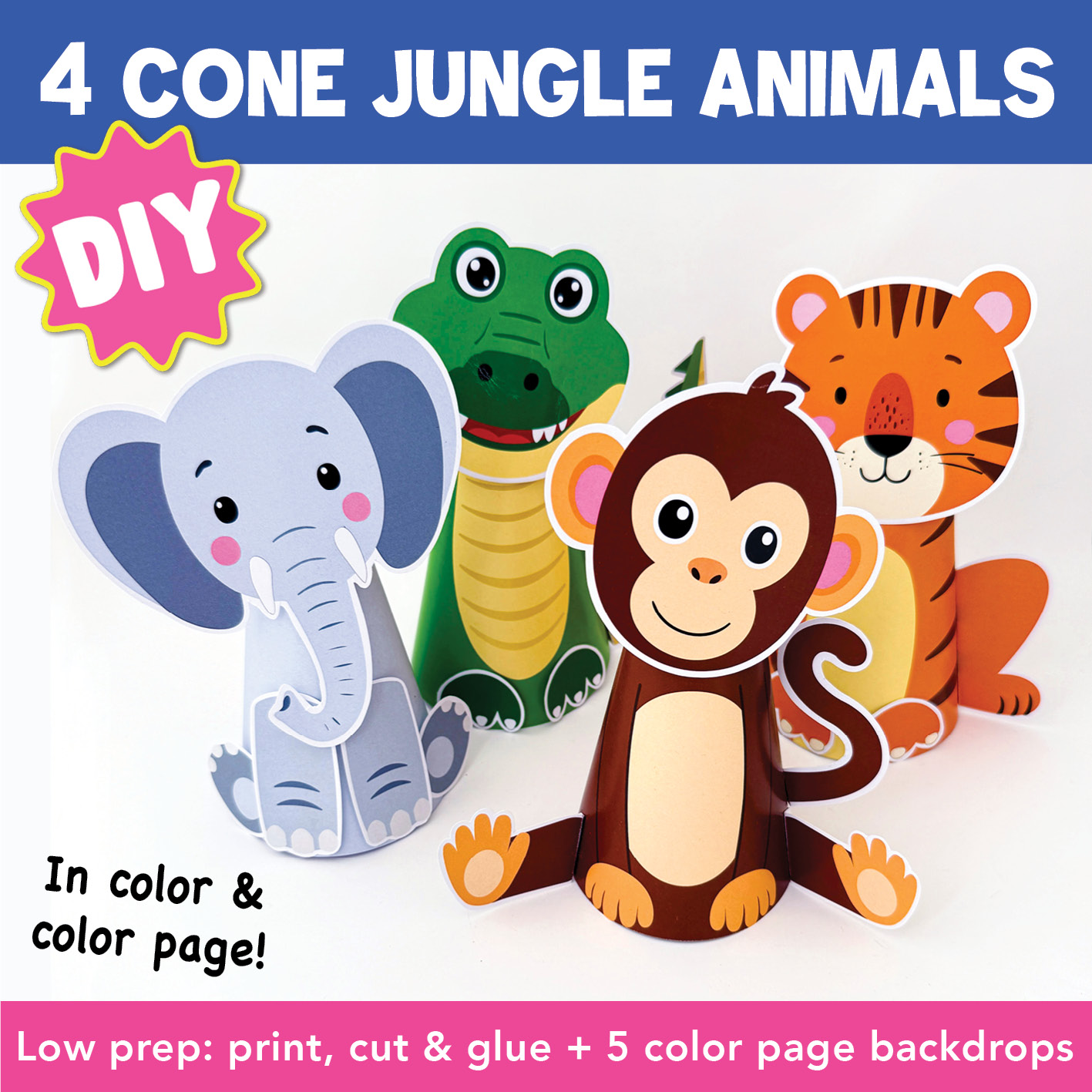 Create a fun jungle craft with this paper cone jungle animal puppet bundle. Students build four adorable cone puppets using easy, low-prep templates.