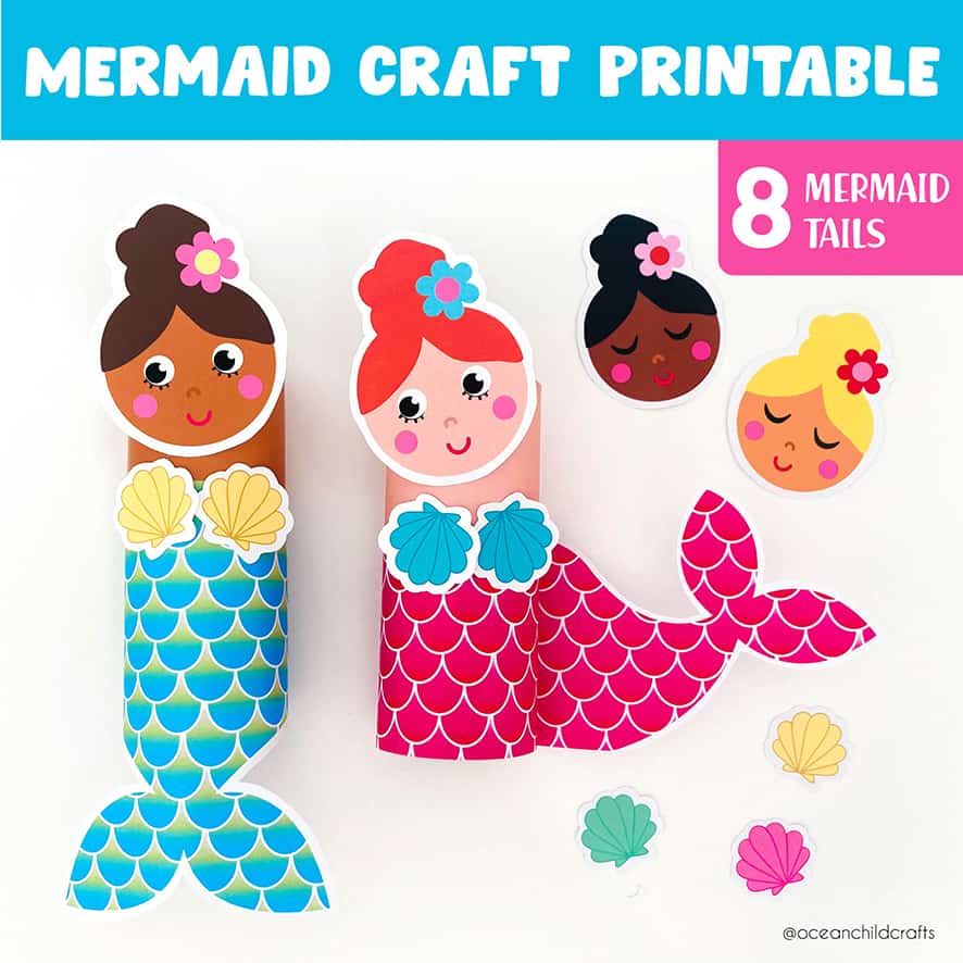 Aloha, thank you for your interest in our mermaid craft printable. This is a fantastic paper roll craft for all mermaid lovers. And perfect for a Little Mermaid birthday party if you need an activity to keep the kids busy. This mermaid printable is full of creative fun and allows the kids to put their personal touch on it. There are four different mermaid tails in color and four tails as a color page. The kids will have a beautiful paper roll mermaid to play with or display at home. Also, check out our BIG craft printable bundle with ALL our craft/activity printables, including this amazing mermaid activity.
