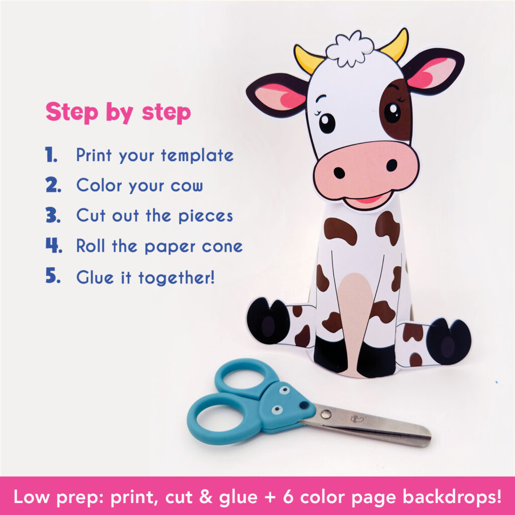 Bring hands-on farm fun to your classroom or home with this Paper Cone Farm Animals Craft Bundle. This low-prep printable set includes four adorable farm animals: cow, pig, chicken, sheep, designed for kids to color, cut, and glue while building fine motor skills and creativity.