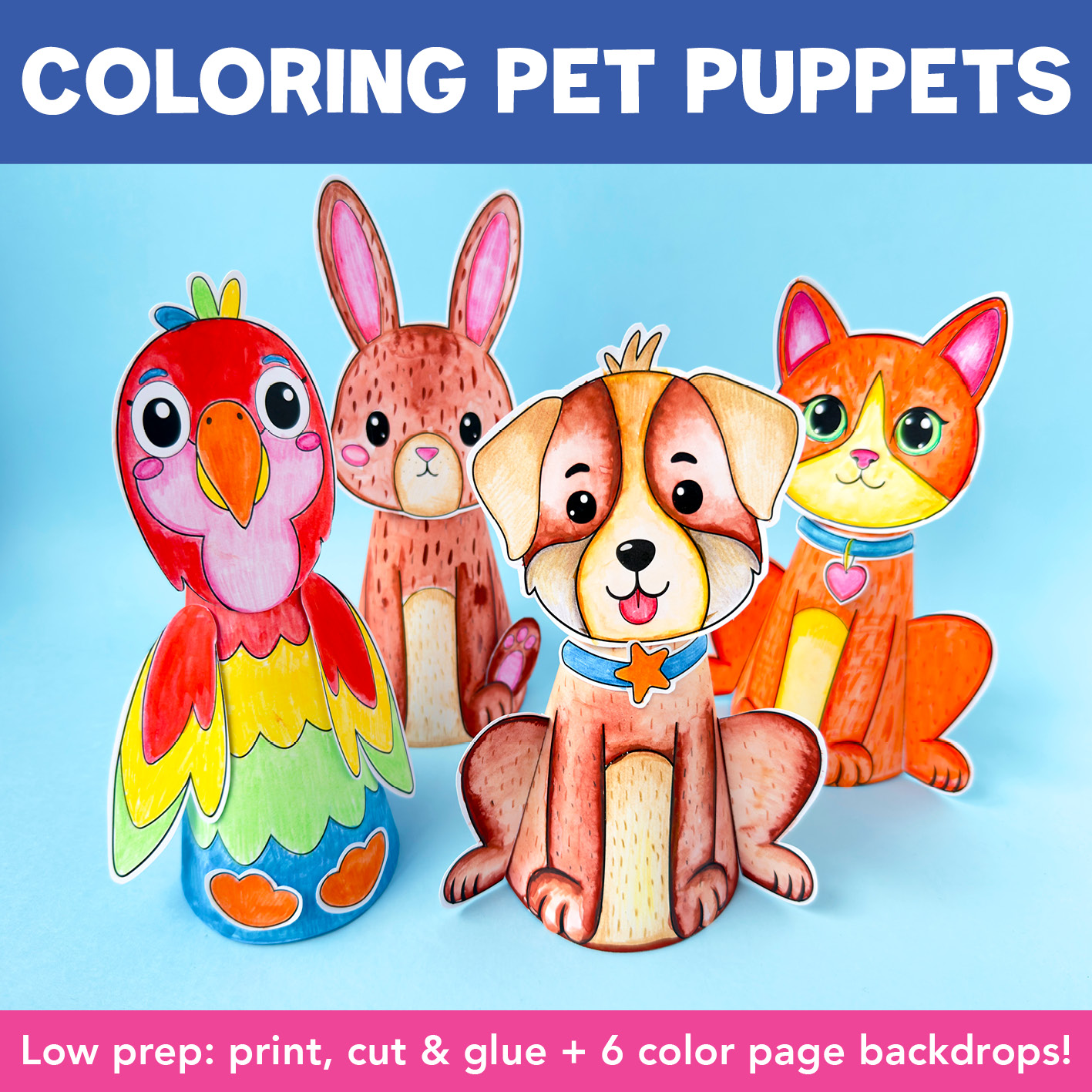 Make craft time easy and engaging with this pet animal craft bundle featuring four adorable pets: dog, cat, bunny, and parrot!