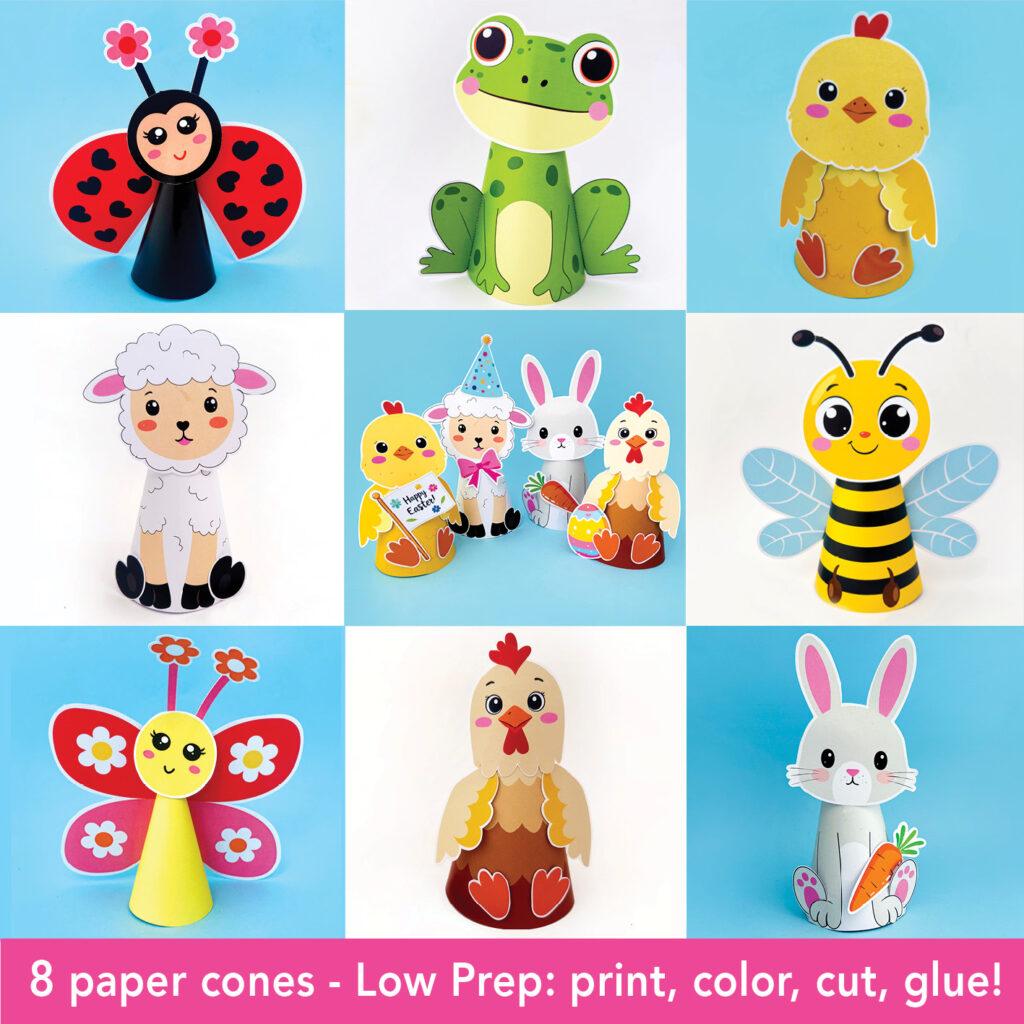 8 Spring Animal Paper Cone Crafts